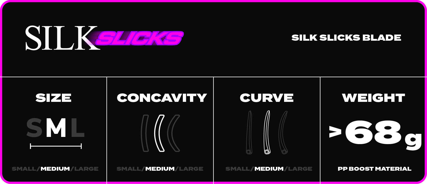 Silky-smooth PP Soft (PPS) material combined with PE slide bar is the perfect combination for slick hands. The SLICKS slide bar, made of PE plastic, gives better slide compared to regular PP blades, while maintaining the touch of PP plastic in the blade. Quick and agile blade with ready-to-play rounded shaped prehook. Modern lightweight blade structure with medium concavity for easy ball handling, silky touch and accurate shooting.